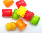 A selection of fizzy sweets with refreshing fruity flavours. The flavours are lemon, orange, lime and strawberry.